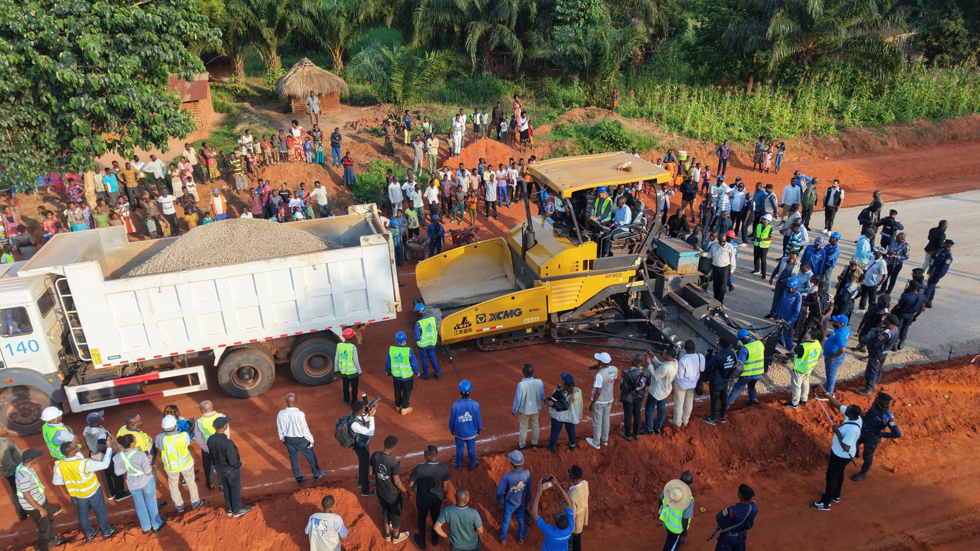 Récemment, M. John Banza Lunda, ministre de l'Infrastructure et des Travaux Publics de la République Démocratique du Congo (RDC), et M. Jean-Paul Mbuwebwa Kapo, gouverneur de la Province du Kasai-Oriental, ont mené une délégation gouvernementale sur le chantier du projet de route bitumée de 280 km de la Nationale N°2 entre Mbuji-Mayi et Mbanza, construit par notre entreprise, pour une inspection sur place. Les médias locaux ont suivi l'événement en direct.
