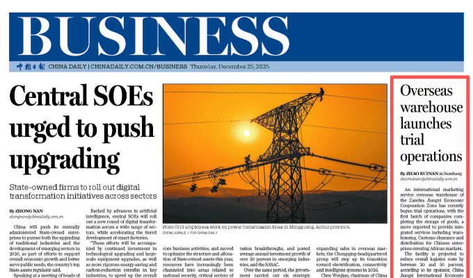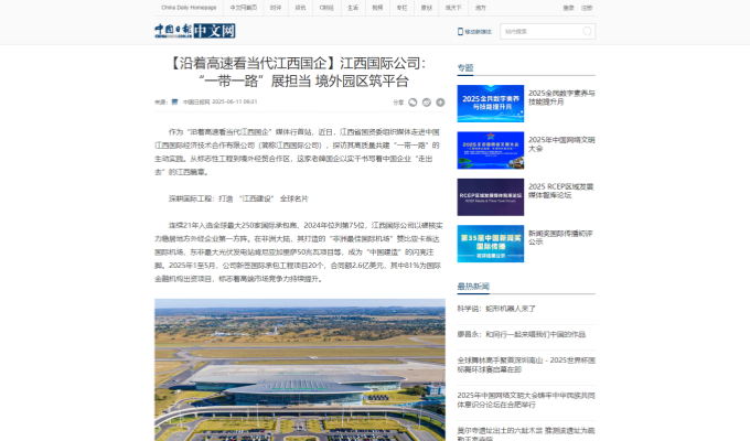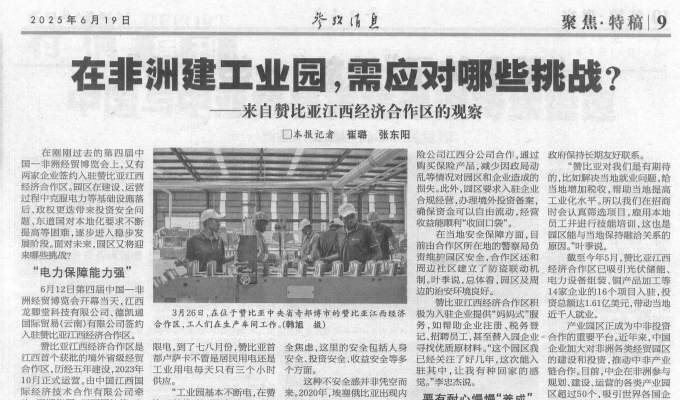 搜索 中江学堂 企业邮箱 EN 首页 关于我们 公司概况 领导致辞 管理团队 组织架构 历程与荣誉 新闻中心 集团新闻 媒体报道 媒体中心 对外交流 业务领域 业务布局 国际承包工程 投资业务 建筑设计与咨询 国内建筑工程 房地产开发 矿产资源开发 其他业务 党的建设 党建工作 党风廉政 信息公开 公告信息 采购信息 招聘信息 社会责任 属地化经营 ESG手册 乡村振兴 志愿者服务 企业文化 价值理念 文化手册 员工风采 合规倡议书 联系我们 首页 关于我们 公司概况 组织架构 历程与荣誉 管理团队 对外交流 新闻中心 集团新闻 媒体报道 媒体中心 业务领域 业务布局 国际承包工程 投资业务 房地产开发 国内建筑与建筑设计 矿产资源开发 海外贸易与劳务合作 党建创新 党建工作 纪律检查 社会责任 属地化经营 乡村振兴 志愿者服务 公益动态 企业文化 核心价值观 员工风采 校园招聘 联系我们 集团新闻 媒体报道 媒体中心 时间: 全部 一周内 一月内 一年内 指定日期 媒体报道 中非数字化合作:人民日报关注博茨瓦纳国家数据中心项目 媒体报道 中国日报关注赞比亚江西经济合作区发展成果 媒体报道 新华网关注莫桑比克马托拉三条市政路项目IB路段移交启用 媒体报道 江西日报全版报道公司“十四五”期间发展成果 媒体报道 省内多家媒体关注公司“走出去”高质量发展 媒体报道 参考消息刊发特稿聚焦赞比亚江西经济合作区发展实践 媒体报道 多家媒体集中报道公司高质量发展成果 媒体报道 聚焦中非合作新篇:人民日报关注赞比亚江西经济合作区发展成果 点击加载更多 企业宣传片 继续探索 + © 2020 版权所有:中国江西国际经济技术合作有限公司 备案/许可证号:赣ICP备05000744号